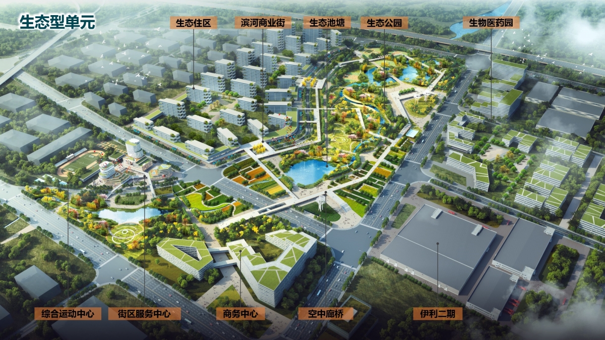 向下指导片区详细规划,引导单元管控。采用“单元管控”方法,将工业园划分为5大类、37个单元。其中,生产型微单元以产业为主导功能,配套多样化生活服务功能;生活型微单元以品质居住社区为核心,配套完备服务设施,满足高品质生活需求;核心服务型微单元,以综合服务为主导功能,满足单元内及周边人群多样化需求;生态型微单元以山体修复、水体治理、耕地保护为主,对各类生态空间进行保护治理;弹性管控型微单元对未明确的用地进行“留白”控制。深化概念方案设计,落实各地块控制指标,作为片区详细规划编制的重要依据。